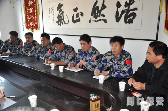 10月18日上午,保安公司在沈丘召开第四季度押运比武练兵部署工作现场会,公司总经理助理、办公室主任耿学争、守押中心主任韩春堂、综合资源部主任石兆华、沈丘分公司经理李清、商水分公司经理杨书杰、郸城分公司经理宋祥灵及公司各押运大队大队长等参加了会议。