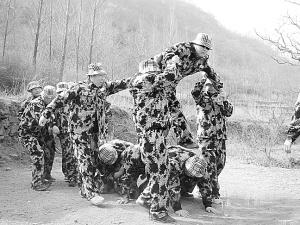 近日,周口市保安服务公司组织60名优秀押运队员前往万仙山训练基地,开展了为期三天的户外拓展训练活动。图为押运队员训练时的情景。 通讯员 许方方 摄