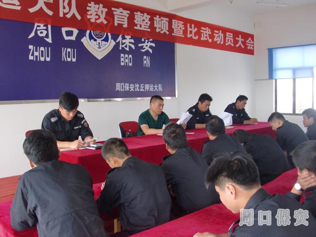 为较好地落实公司“正人品、正风纪”教育整顿计划,进一步加强保安队伍管理,切实整治保安队伍中存在的突出问题,9月18日,周口市保安服务公司押运沈丘大队组织召开了教育整顿活动动员大会。